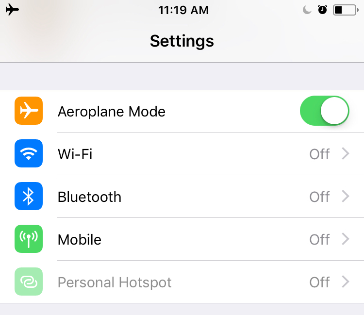 Active data connections are a drain on your battery. If you switch over to aeroplane mode you conserve battery. This means, that if your phone is plugged in overnight, but it’s slow to charge, that switching to aeroplane mode can help it to charge faster. This is also a handy hint to know during the day when charging, or even if you are running low on battery while out and still want to be able to send or receive calls and text but conserve your battery.
