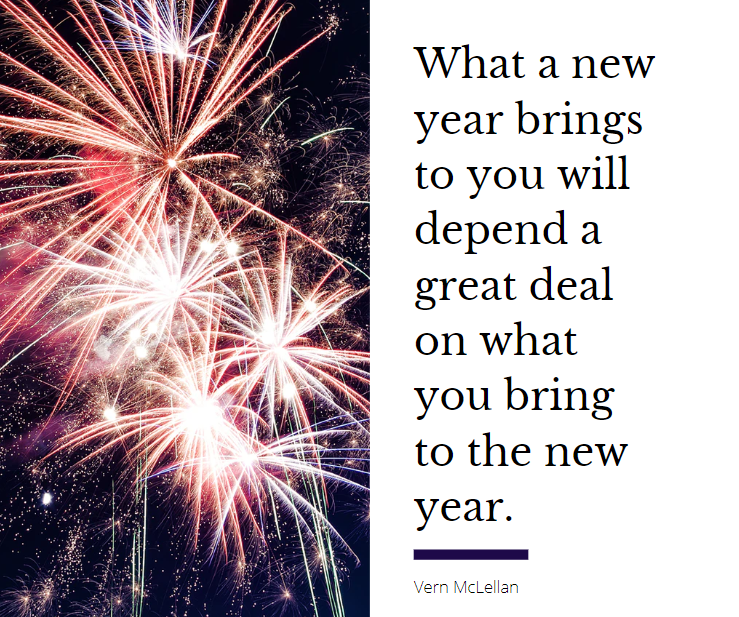 What a new year brings to you will depend a great deal on what you bring to the new year. Vern McLellan.