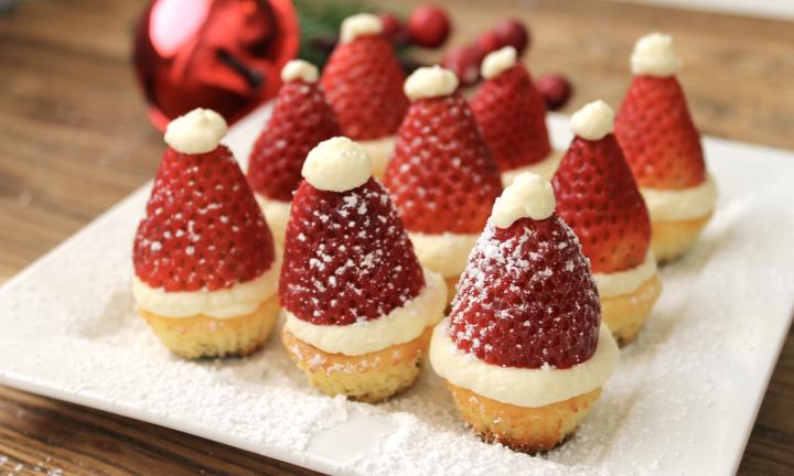 Have you ever seen any more adorable than these mini Santa cheesecakes? They’re so easy to make and the kids will love topping the strawberries with a dollop of sweet cream cheese and a dusting of icing sugar. If you want to make them a little healthier you can always sub Oreos for your own batch of mini cookies.