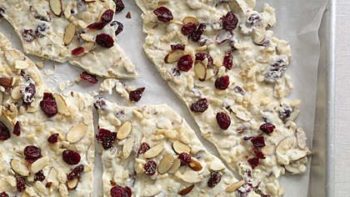 We love this recipe as it’s a great balance of sweet and savoury. Plus, it’s so easy to make. The secret is to use good quality white chocolate. We’d go with Whittaker’s Coconut Slab for a real showstopper. Dried cranberries are great for the heart, almonds are packed full of antioxidants and the Rice Bubbles give it a real crunch.