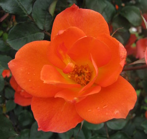 ‘Warm Welcome’ (pictured left) – an earlier Warner introduction with masses of bright orange single blooms, stunning in full flower. Dark foliage compliments the blooms. Novelty Award winner, NZRS Rose Trials 1994.