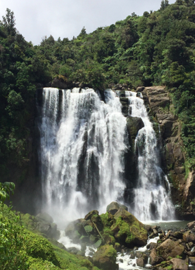 Back in the car we’d barely travelled more than a few kilometres when we stopped again. This time a downhill track had us thinking about the uphill return, but we shouldn’t have been concerned. The trek was worth the effort to visit the hidden Marokopa Falls in full flood. The coast was still some distance away, so back in the car and onward.