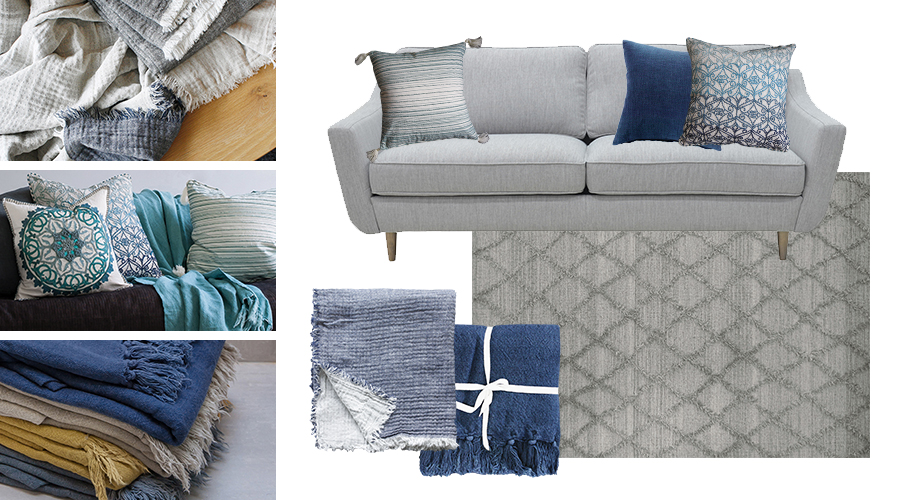 Using natural fibres such as linen or jute is not only on trend but it also helps to link back to nature. It helps to soften a room and adds balance, especially when the key feature piece of the room is the furniture. There are so many beautiful jute options available, so you can create your very own coastal oasis. La-Z-Boy have paired up their Baltic 2 seater sofa with both blue and green accessories, to show how easy it is to change the look in your home dependent on mood and desire.