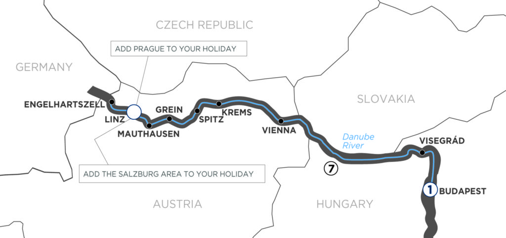 The legend of the Danube, Austria & Budapest invite you to make history of your own! Visit the stunning Engelszell Abbey and its sensory garden; get your heart racing at a Medieval Knights Tournament at Visegrád’s Lower Castle featuring targeting and fighting demonstrations; or paddle a canoe down the Danube. Meet the Count of Clam at Greinburg Castle, or take an insider’s tour of Vienna – the choice is always yours!