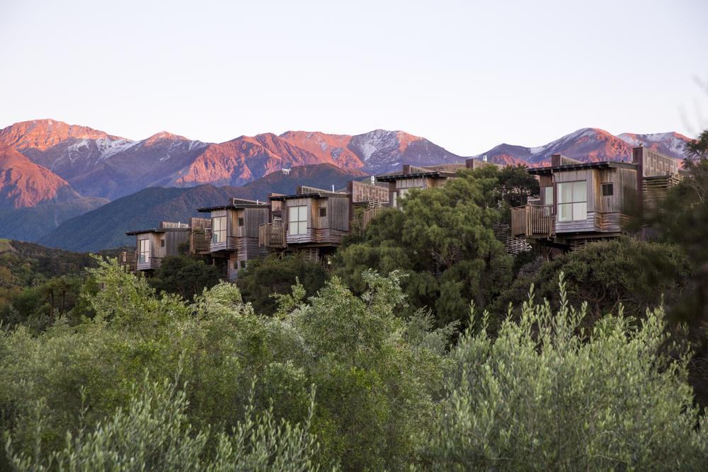 Hapuku Lodge, Kaikoura – a luxury treehouse located 10 metres up in the air, it has both fantastic views of the ocean and the hills. This offers great views, a nice room, and a bathroom above a native Kanuka grove. There is a two person spa bath, fire place and a fantastic balcony.