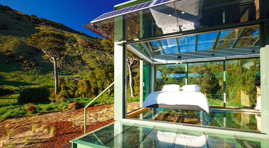 Pure Pod, Little River – offering something a little different, this glamping accommodation is completely made with glass. That means you can be under the stars at night and have great views in all directions. Is it a solar powdered glass pod, raised off the ground so you can see the plants and vegetation underneath. You can either bring your own food or dinner and breakfast can be added for an additional fee.