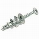 Arguably the most common hollow wall anchor is the Spring Toggle. These are simply thin machine screws with a pair of spring load ‘wings’ that are held closed whist being pushed through a hole in the wall and then when through, will spring open and form an anchor. Spring toggles form a good strong method of fixing items to plasterboard and other hollow walls. A major disadvantage is that once the spring-loaded ‘wing’ is inside the cavity you cannot remove it, in fact, if you unscrew the machine screw the wings will fall off and drop down inside the hollow wall.