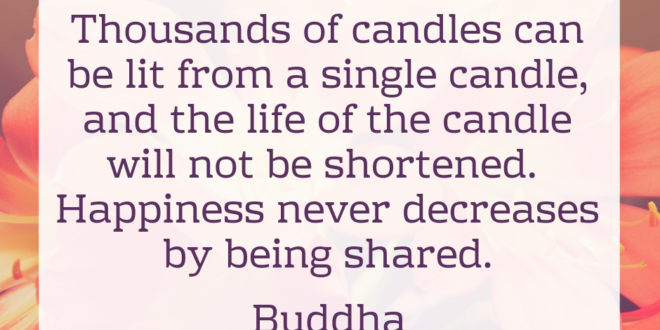 Quote: Buddha November 15, 2018 QuotesThousands of candles can be lit from a single candle, and the life of the candle will not be shortened. Happiness never decreases by being shared. Buddha.