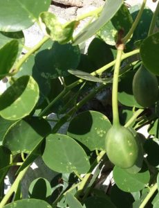 Left to grow on, the buds eventually swell, then open to display a very beautiful creamy-white flower with deep purple stamens. The flowers are usually short-lived due to the hot conditions in which they bloom. Once the blooms are spent, a stout seedpod develops.